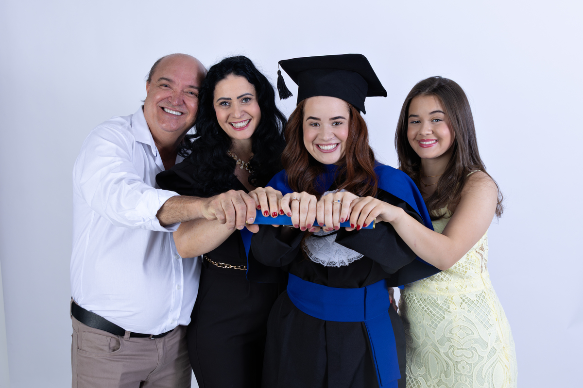 Fotografar formandos é capturar uma energia contagiante. É o momento de celebrar as amizades feitas na faculdade e o orgulho da família. No nosso estúdio, criamos um ambiente dinâmico para que cada foto transmita exatamente essa vibração: a de que o futuro chegou e ele é brilhante.